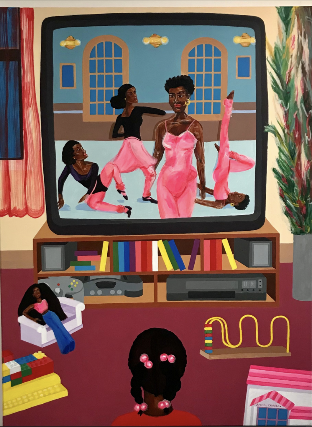 Hailing from Schenectady, New York, April’s Artist of the Month Aysha Charise began her career by packing up and taking her dreams of being an artist with her to New York City. While enrolled at the Fashion Institute of Technology for Textile/Surface Design, Aysha was able to hone in on varied skills and crafts that further ignited her passion. After getting her start in the big apple as a painter and curator, she moved back home and got to work. Since returning upstate, Aysha has been teaching art classes and curating galleries. Her latest gallery curation, “No Ma’ammy”, featured forty pieces by Black artists that showcased and celebrated Black women. After taking the opportunity to examine her artistry, we discussed everything from her commitment to one day having a wardrobe filled with her own handmade pieces, to her dedication to not only paint in color, but to live in it. Aysha states, “No one thrives in a grey world.” In a world that can at times feel so grim, Aysha’s light illuminates us all.