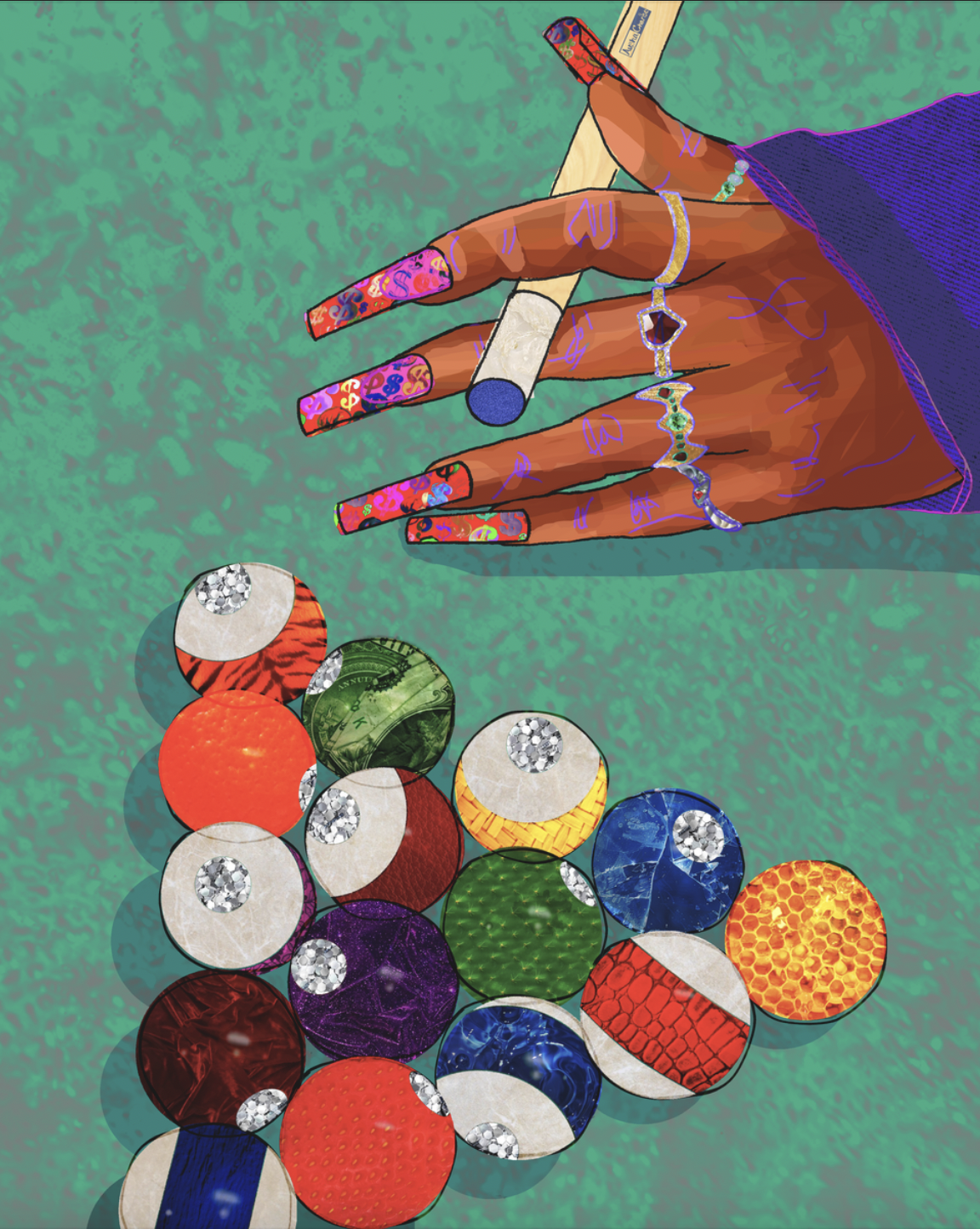 CHARISE: There tends to be an underlying tone of nature and queer identity in my pieces. My pieces are often loudly colorful interior designs of spaces I’d love to be or have been immersed in, fashion illustrations that story tell miscommunications in relationships, self discovery, and colors that move around the composition like I’ve witnessed my whole life during the changing Upstate NY weather seasons.